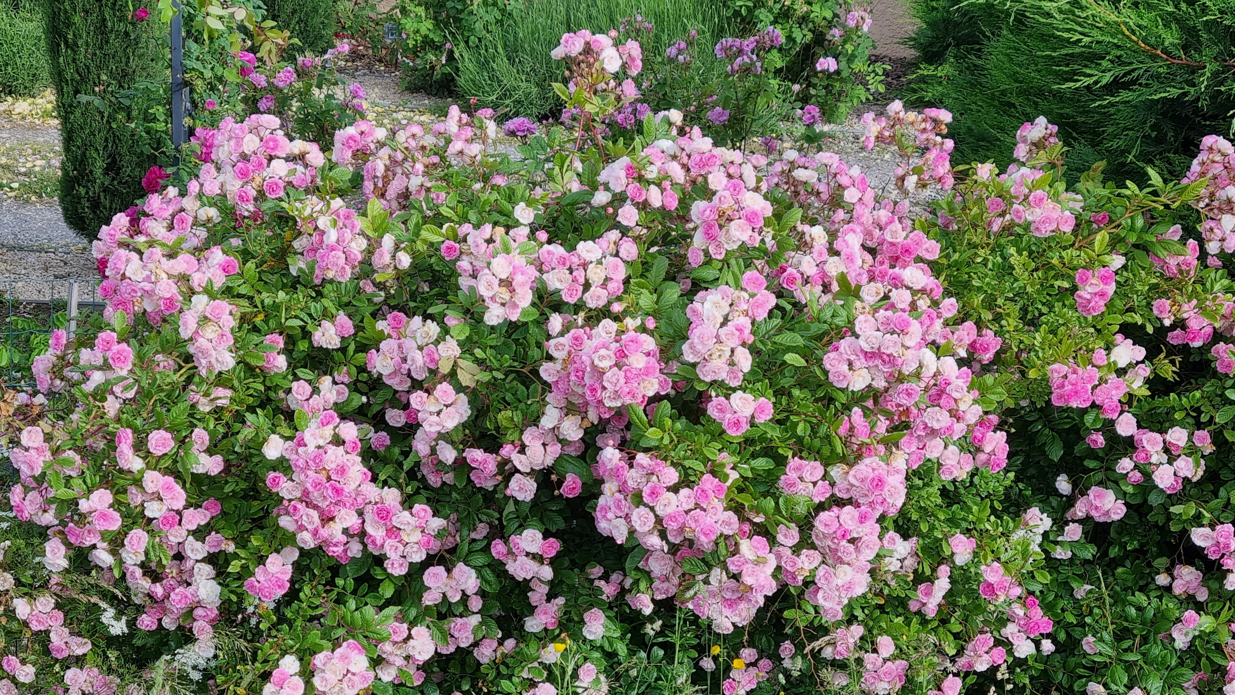 The climbing rose 'Frau Eva Schubert' has very healthy foliage.