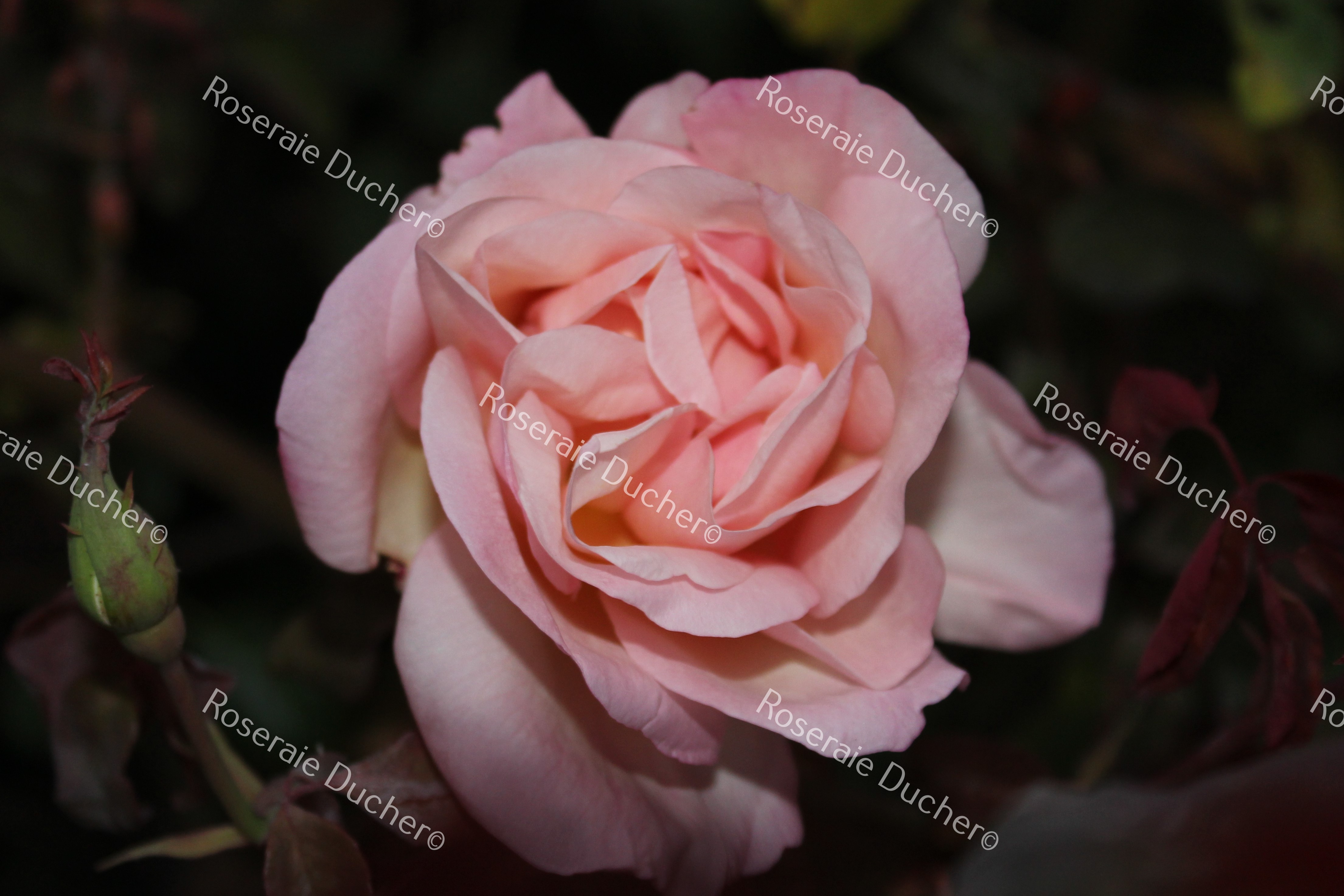 'Jean Ducher' a une coloris rose des plus délicats, semblable à de la porcelaine. Rosier au feuillage sain, Jean Ducher fait partie de la famille des rosiers thé qui sont des rosiers qui fleurissent presque continuellement sous le climat  méditerranéen. Parfum doux et agréable.